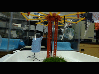 The .gif below depicts our carousel tick assay. Ticks are placed in a small patch of turf grass surrounded by a sticky trap. The carousel rotates at a set speed and gently grazes the top of the turf grass patch with a piece of cloth to which ticks may attach to. The cloth may be treated with repellents to determine their efficacy based on the number of ticks that attach.